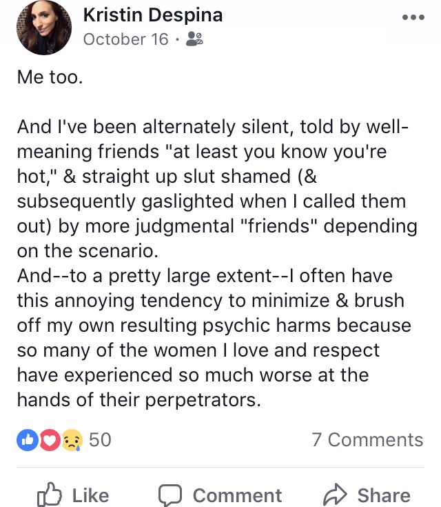 In a vague, roundabout way, I included Elise in my story when I added my voice to last month’s online chorus of #metoos: